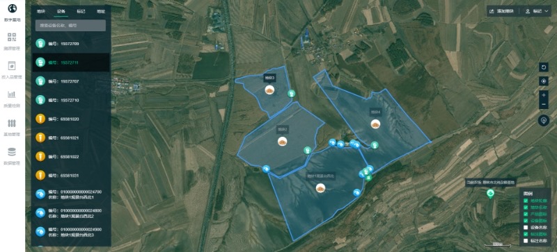通过标记的农作物地块,展示农作物作业区域、农作物品类、物联网设备等,对农田的大小、地理位置信息、农作物信息有清晰的了解。
