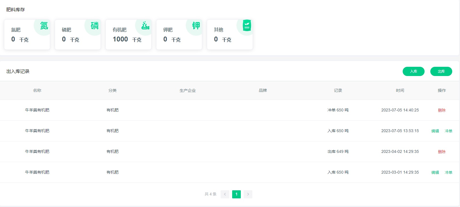 对氮磷钾肥料、有机肥等的库存、投入、品牌及数量进行管理,对农药的管理,对种子种苗的管理,方便出入库的管理,对整个农业种植做投入产出预算规划有积极作用。